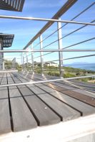 Garapa decking untreated with Iroko balustrades and stainless cables.Deck was design to have no maintenance and to last min. of 15 years .With maintenance this could easely go to 30 years